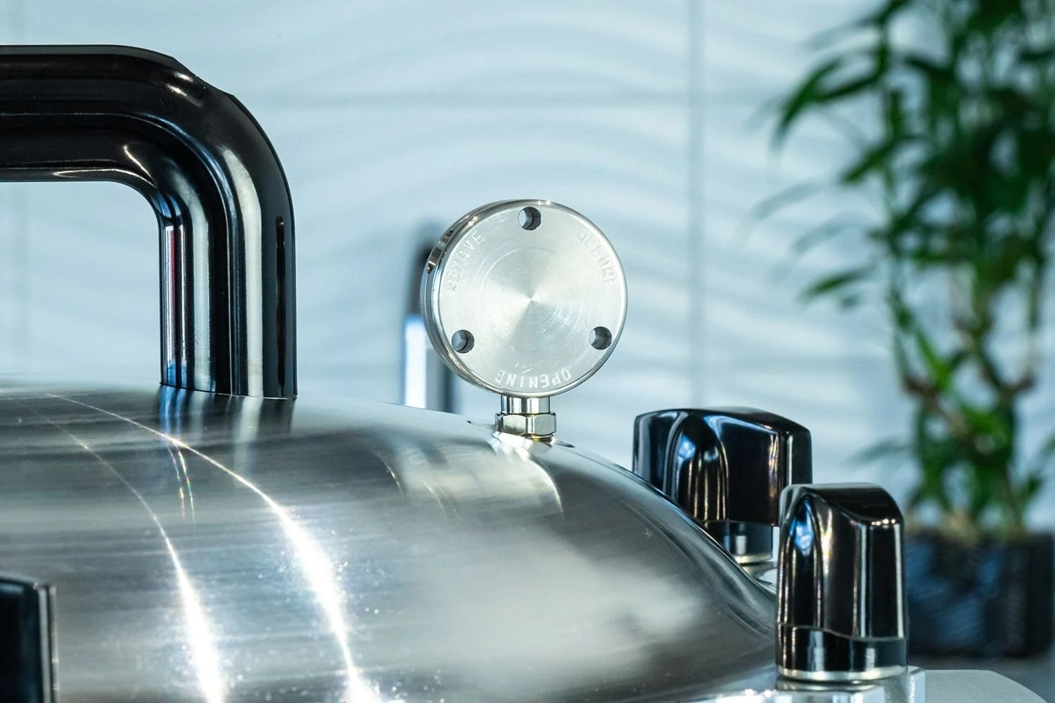 - Automatic overpressure release safely removes excess pressure from the cooker