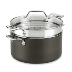 Each pot and pan in the All-Clad 7pc Cookware set has rolled edges for easy, drip-free pouring, and is engraved with the All-Clad stamp and the vessel’s capacity. This kit is proudly made in the USA, and is backed by All-Clad’s limited lifetime warranty against defects.