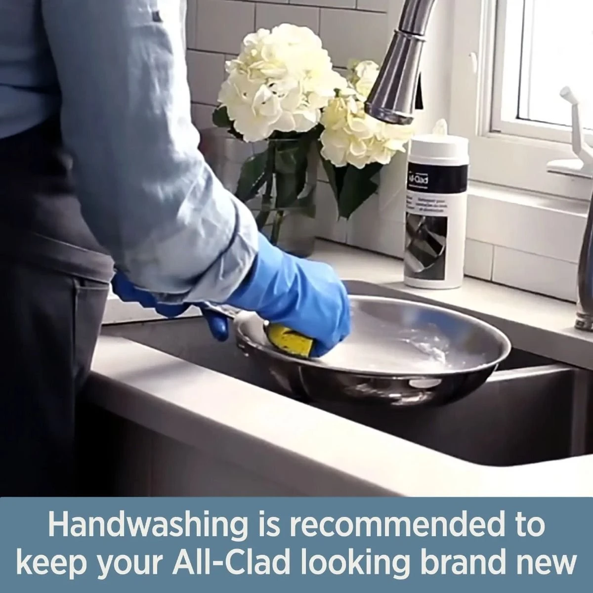 Enhance your cookware collection with the D3 Stainless Steel Saute Pan with Lid from All-Clad. This pan features a tri-ply construction with a thick gauge aluminum core surrounded by a brushed stainless steel exterior and a stainless steel cooking surface. With this design, the pan heats up quickly and evenly to avoid hotspots. The easy-to-hold side handles allow for secure lifting and transporting, and the fitted lid seals in heat and moisture. Compatible with all cooktop surfaces, including induction, this versatile pan can also be used in the oven up to 600°F. This means you can use it for a wide range of kitchen tasks, from sautéing and simmering to baking and roasting. With its large size and straight edge sides, you can create one-pot meals for the whole family without over-crowding or even roast a whole chicken! After use, hand-washing is recommended to preserve the quality of the pan. For a truly invaluable pan that will quickly become one of your cookware go-to’s, order the All-Clad D3 Stainless Steel Saute Pan with Lid today!