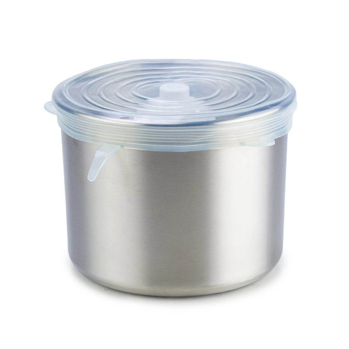 - The lid has four tabs that act like corners to pull over the stainless steel bowl