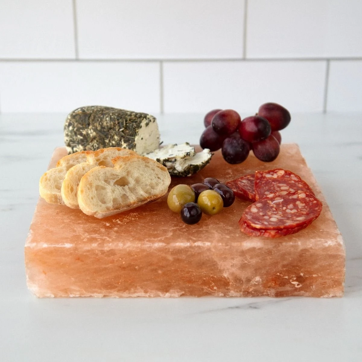 This all-natural, FDA-approved slab of Himalayan salt from Camerons Products is the perfect way to season your food while you cook. Preheat on the grill and cook food right on top for moist, flavorful results. You can also chill the block to use as a serving dish for cold appetizers. When you are done, simply allow the block to cool, wipe with a moist cloth, scrape any areas with food clean, dry, and store in a cool, dry place. Color may change during use- this is normal.