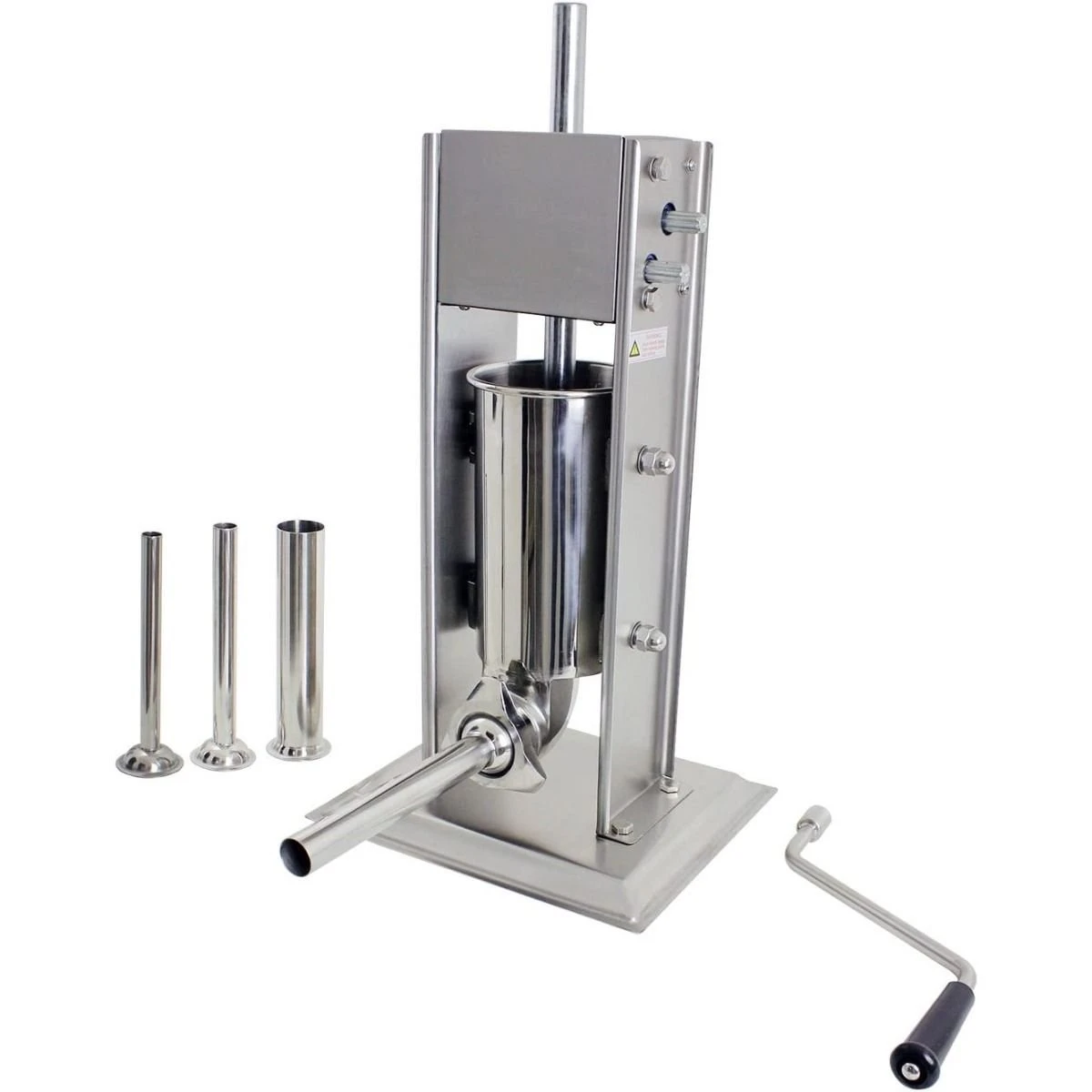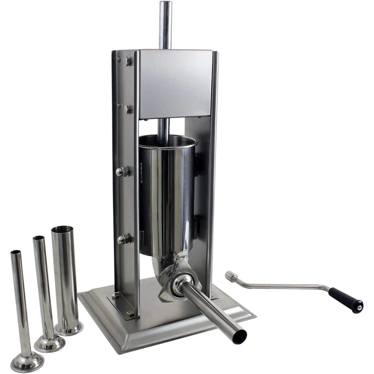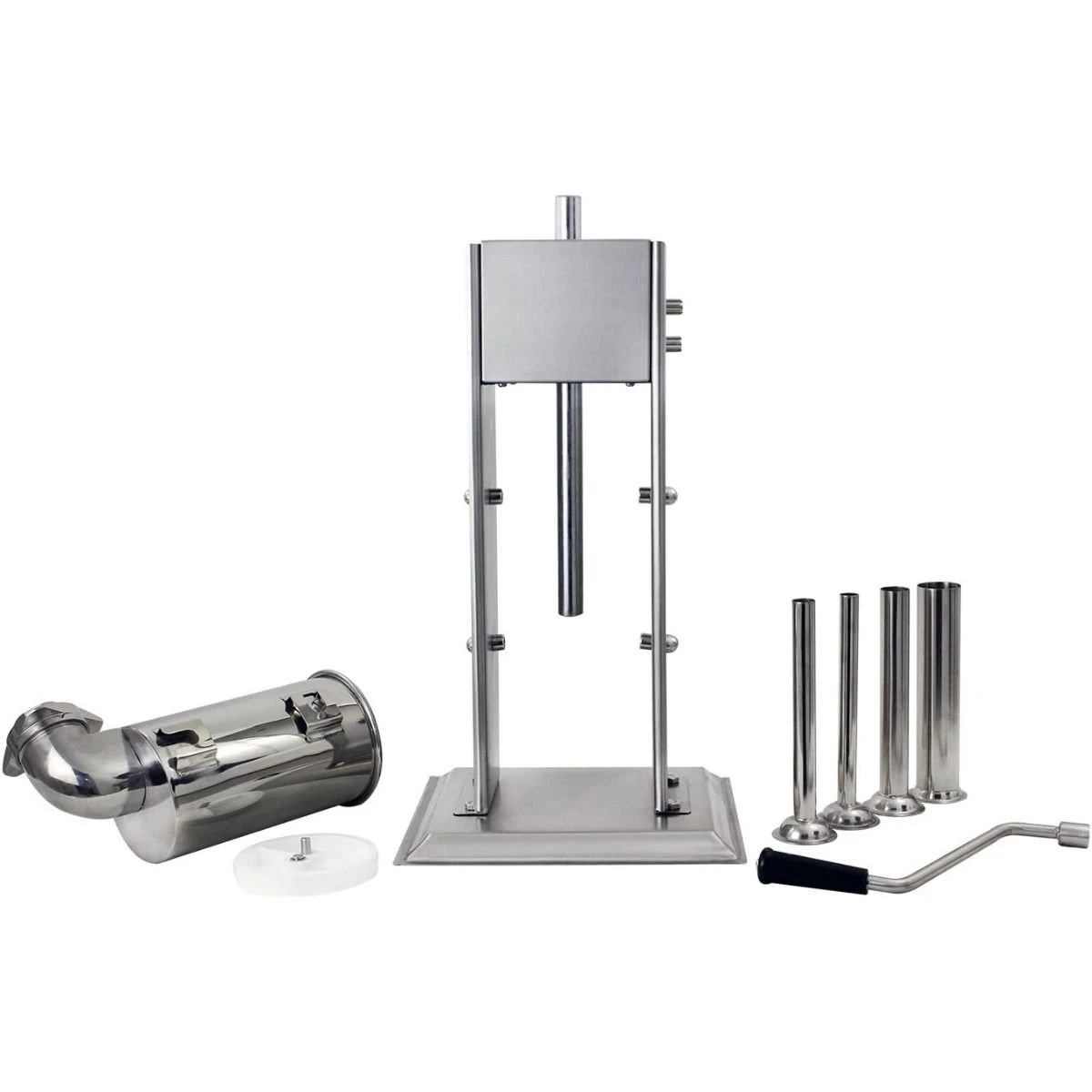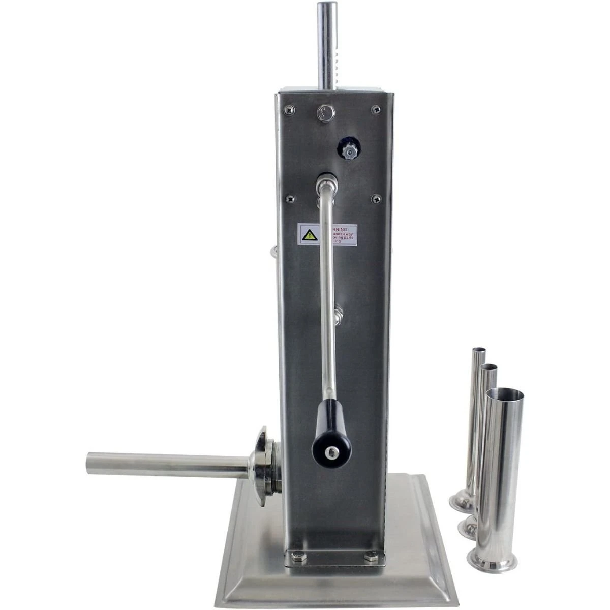 Make your own homemade sausage links, Italian sausage and bratwurst with the Vertical Sausage Stuffer from Chard. Constructed from durable stainless steel, this sausage stuffer operates with a crank action and dual metal gears that allow for precise stuffing and quick refill. The hopper is removable for easy filling and cleaning, and the stuffing piston features a release valve that prevents meat retraction. Included with this stuffer are two piston gaskets and four differently sized stuffing tubes, each with a funnel-shaped end that allows for large quantities of meat to be pushed through a .6″, .75″, 1″ or 1.5″ diameter tapered tube. Perfect for hunters and homesteaders, the Chard Vertical Sausage Stuffer will keep your freezer stocked with your favorite homemade sausages!