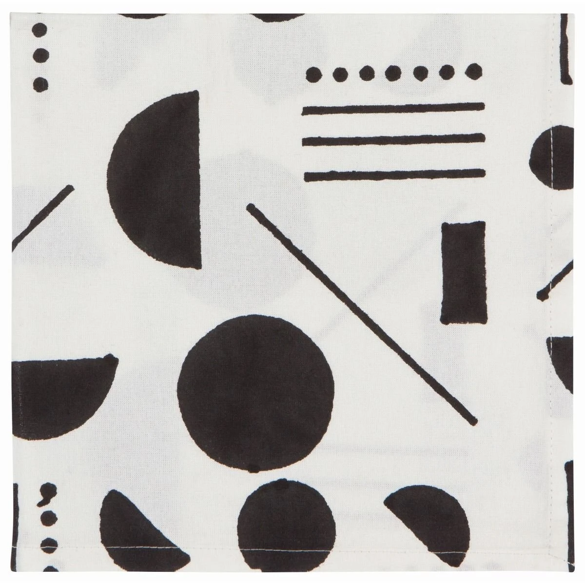 Add a modern flair to your table spread with the Danica Studio 18″ x 18″ Napkins in Domino! These napkins are adorned with black circles, semi-circles, rectangles, and lines to mimic the patterns of a set of dominoes. This set includes 4 block print napkins. Pair them with a colorful table spread or a neutral one to let the napkins shine.
