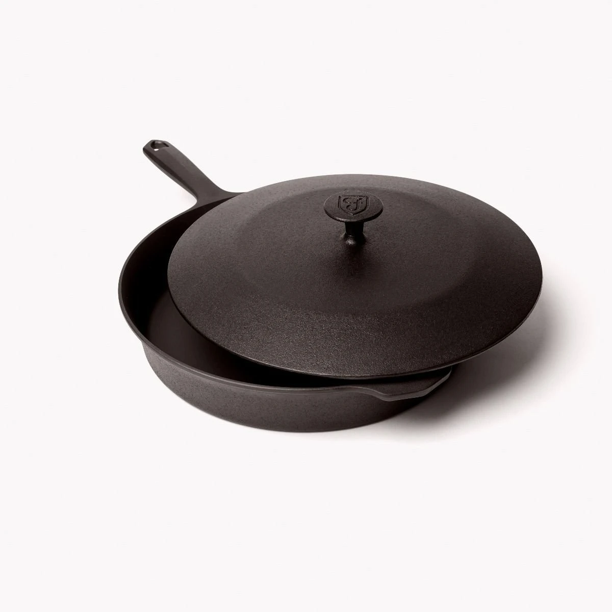 Enhance the abilities of your Field Skillet with the Field Company No. 10 Cast Iron Skillet Lid! Just like your Field Skillet, the Skillet Lids are made entirely of American-sourced recycled iron and molded using green sand castings to capture the best features of vintage cast iron cookware. To further encompass this ethos, the lid revives the practice of including a self-basting lid, allowing for more even basting and moisture distribution when steaming or braising. The 13.38″ diameter fits snugly atop your Field No. 10 Skillet, and the naturally nonstick pre-seasoned finish will reflect your skillet’s patina after time and only get better with age. To utilize your Field Skillet to its fullest abilities, use the Field Company No. 10 Cast Iron Skillet Lid!