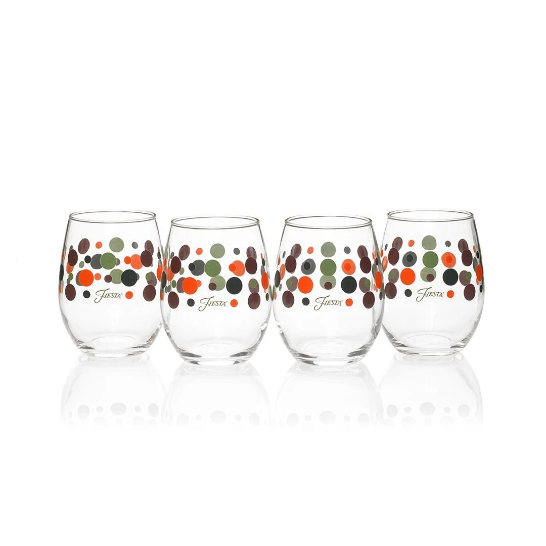 Serve your favorite wine in fun and festive Fiesta® colors with the Stemless Glassware Set in Slate Fiesta® Dots! Crafted of lead-free high-quality glass and proudly made in the USA, these stemless glasses are perfect for serving wine & cocktails at dinner or milk & orange juice with breakfast. With Slate, Sage, Claret, and Poppy dots, these elegant glasses will look great with any of your grey, green, red, and orange Fiesta® pieces or as a colorful accent with your existing dinnerware. Add a pop of color to your dinnerware collection with the Fiesta® Stemless Glassware Set today!