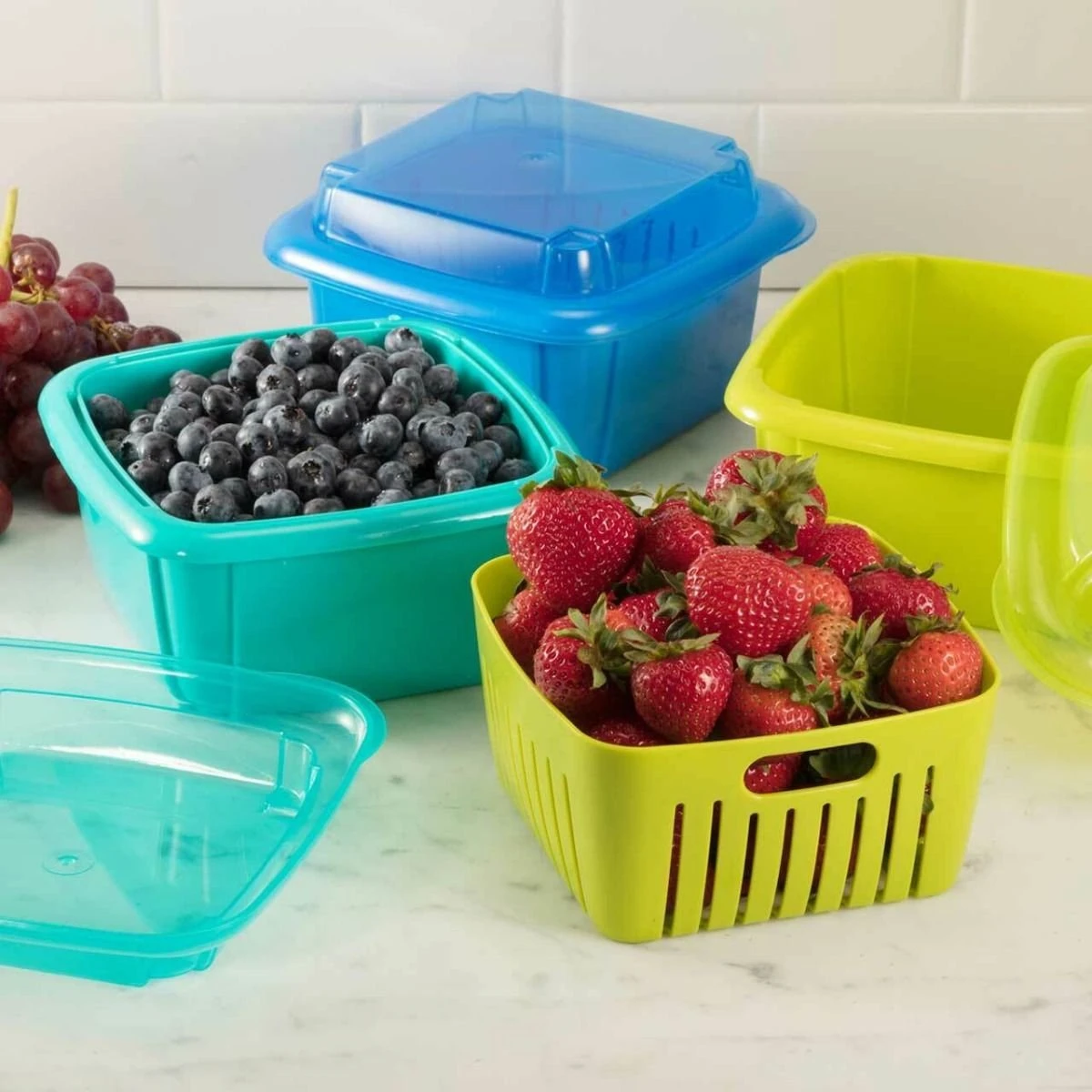- (1) Translucent Lid for storing berries in the refrigerator. Easily see what’s inside without opening. Keeps everything at the perfect humidity, making produce last longer.