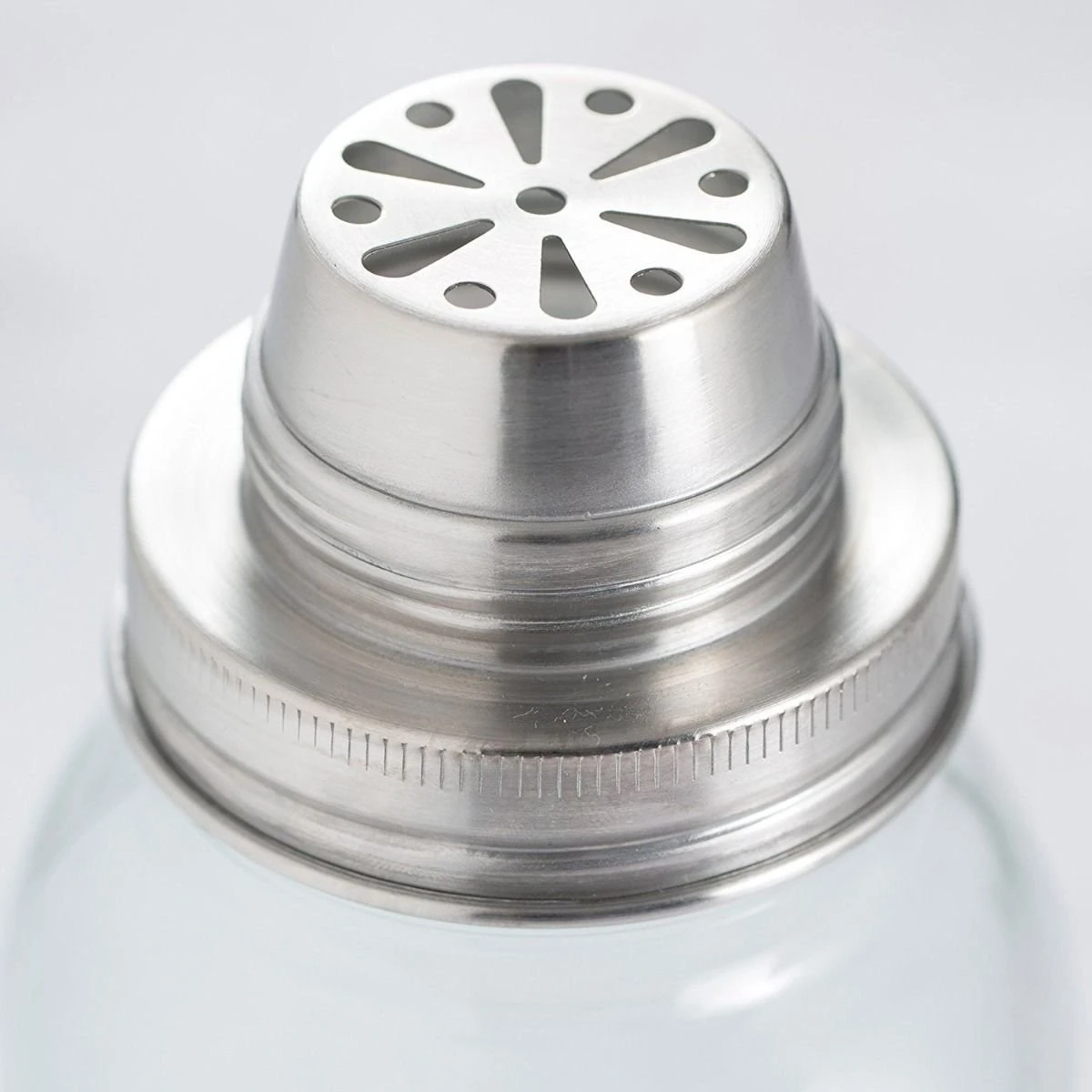 - Flower-shaped holes on shaker lid to easily strain cocktails into handled jars