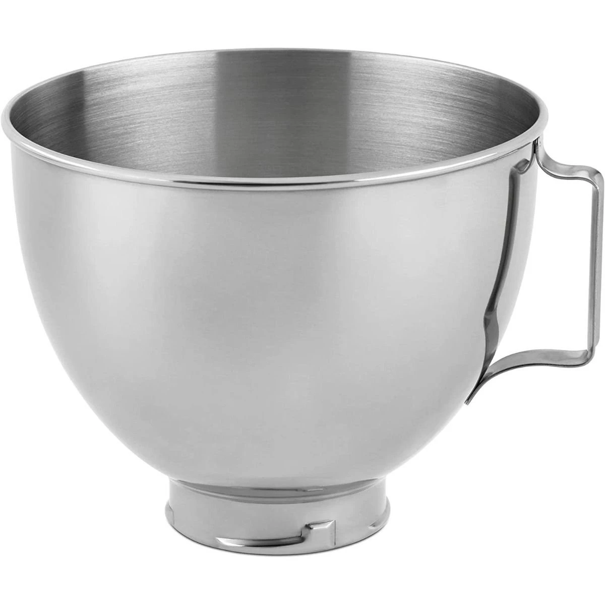 Mix batters, knead bread doughs, or whip cream with ease in the KitchenAid 4.5-Quart Polished Stainless Steel Bowl with Handle. This bowl acts as a replacement or spare mixing bowl for your KitchenAid 4.5-Quart or 5-Quart Tilt-Head Stand Mixer. The sturdy construction features a convenient handle, letting you easier pour mixures from the bowl onto your working surface or into baking dishes & pans. Dishwasher-safe for easy cleaning, this mixing bowl lets you spend less time cleaning up and more time tackling your next baking task.