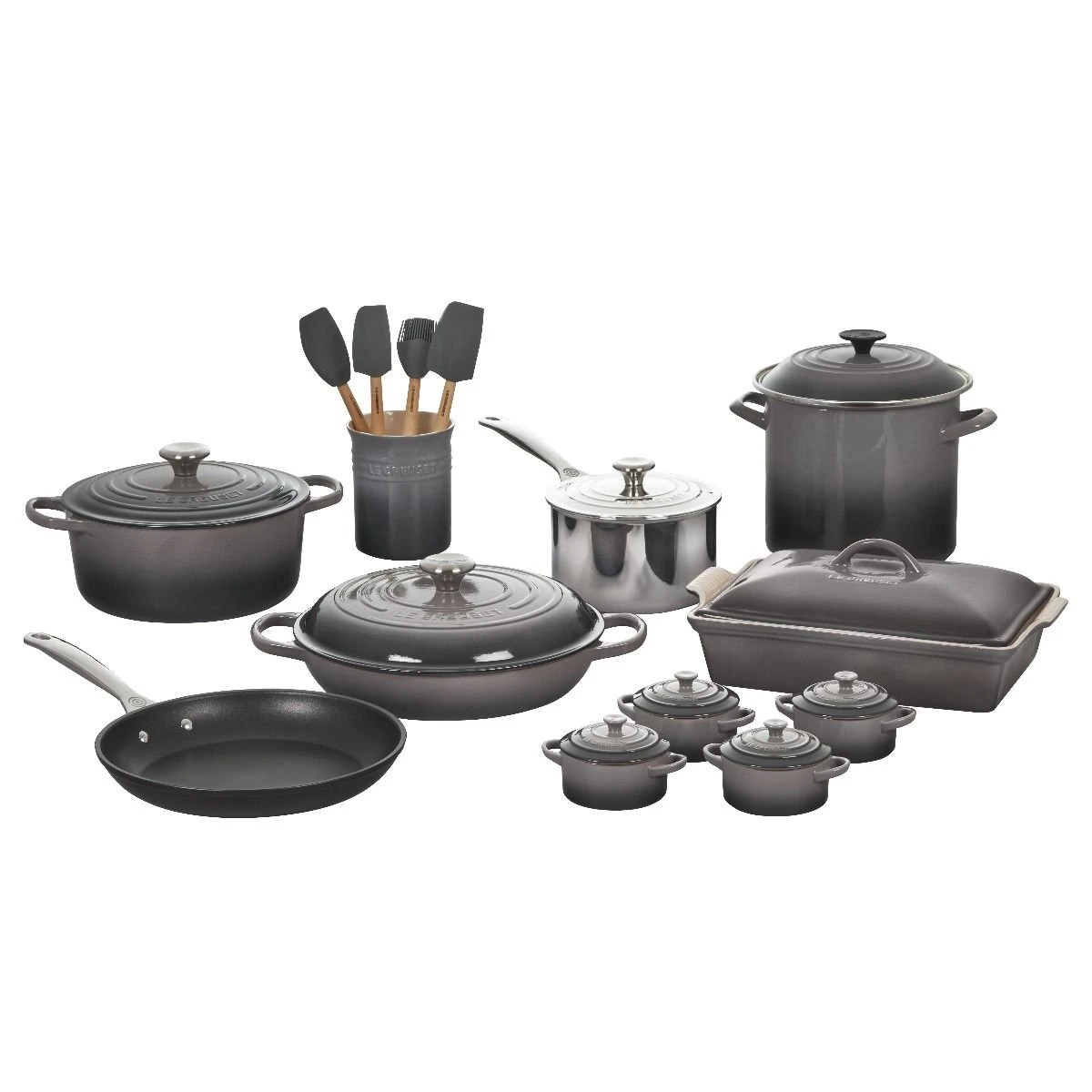 Le Creuset 20-Piece Mixed Material Cookware Set (Oyster) Features: