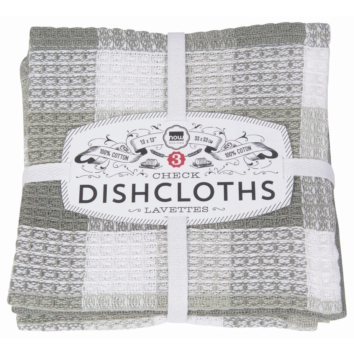 Now Designs by Danica Check Dishcloths (Set of 3) – London Gray Features: