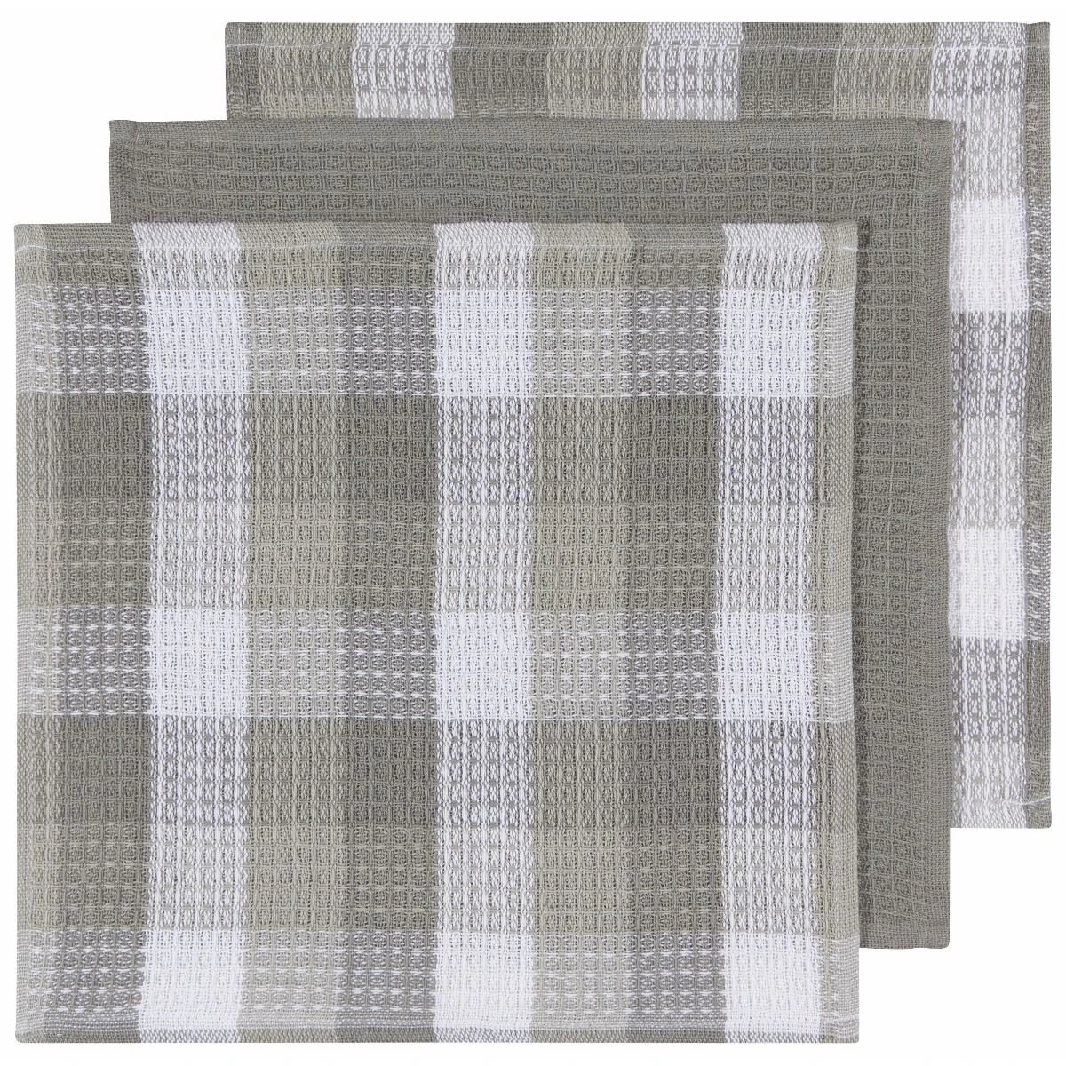 • Includes three waffle-weave dishcloths in classic neutral tones of gray, taupe & white