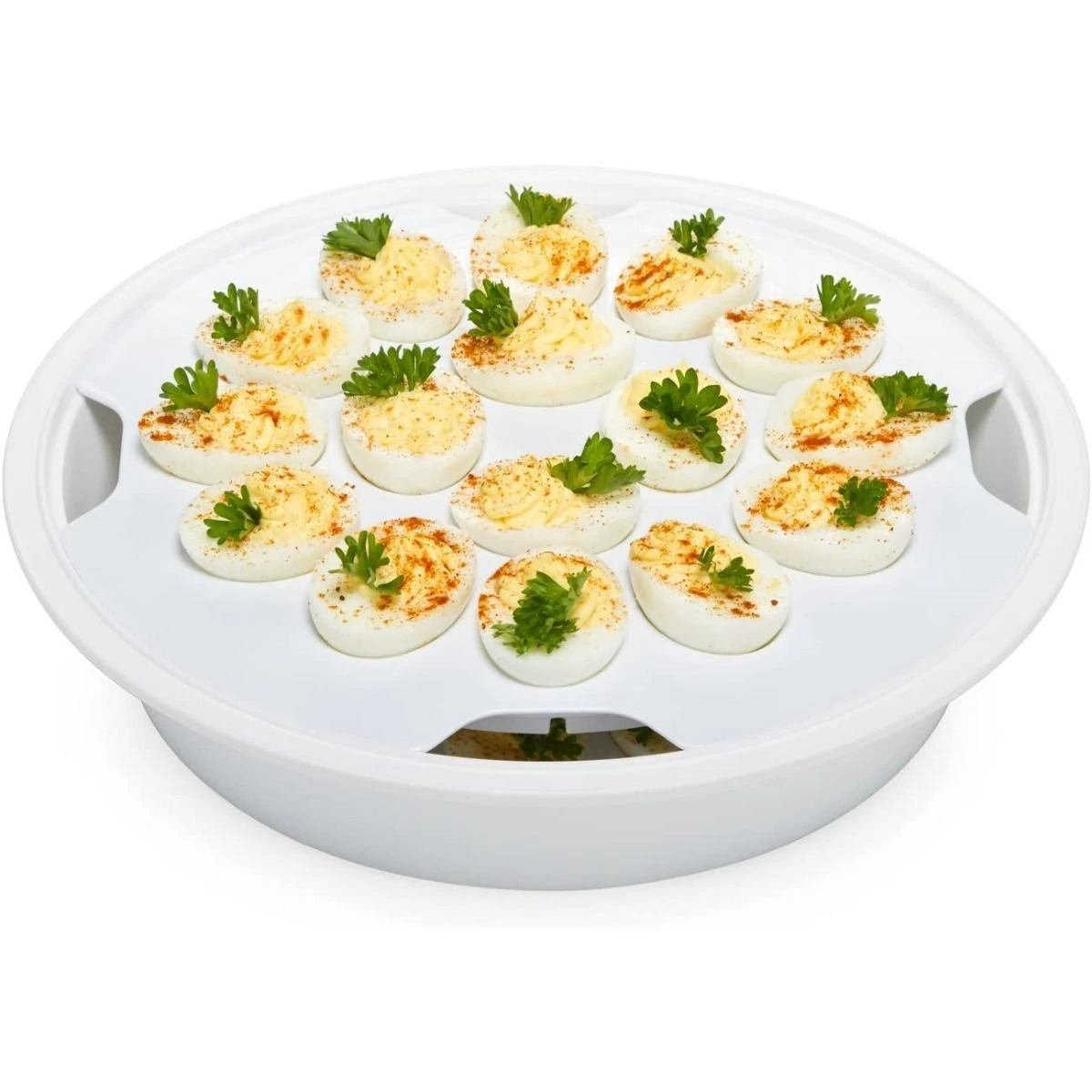 Progressive delivers appetizers, pies and other dishes to potlucks and parties securely with the prepworks collapsible carrier. The plastic collapsible carrier includes two reversible trays that hold eggs and protects pies carrying up to 28 eggs or two pies. The carrier lid collapses holding both trays in a compact, space saving form. Keep food safe while transporting it to your next party or potluck with the Progressive prepworks collapsible carrier.