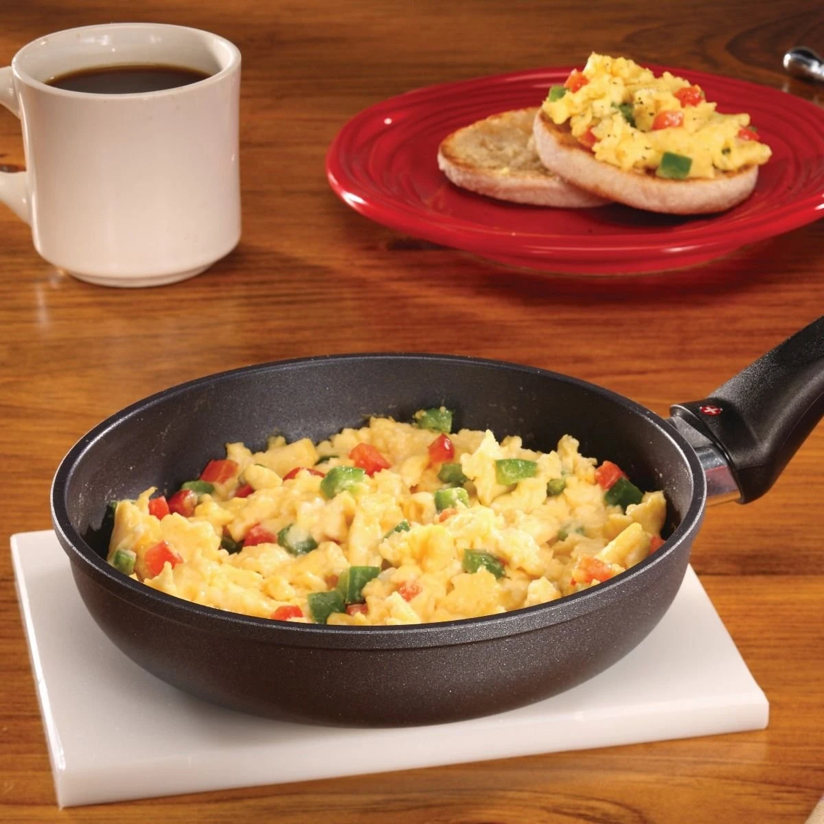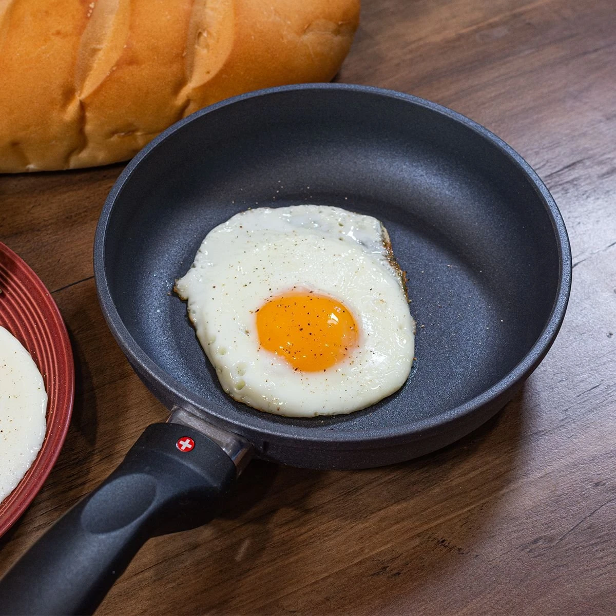 Swiss Diamond’s Try Me products are a fantastic way to experience the precision craftsmanship of Swiss Diamond cookware for yourself, and at a fraction of the price of its larger cookware. The 6418T small frying pan is made from cast aluminum with a 7-inch cooking surface that’s handy for breakfast foods like fried eggs & omelettes, bacon, and toast; the elevated, ergonomic handle stays cool to the touch and is good for flipping pancakes or working stir-fry vegetables.