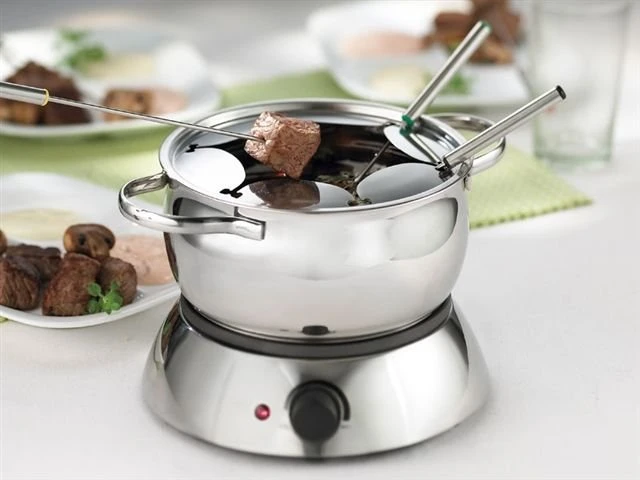 Enjoy a luxurious 3-course meal with the Trudeau Alto 3 in 1 Electric Fondue Set. Now you can treat yourself to cheesy appetizers, succulent meaty entrees, and delicious chocolate desserts, all in one fondue pot!