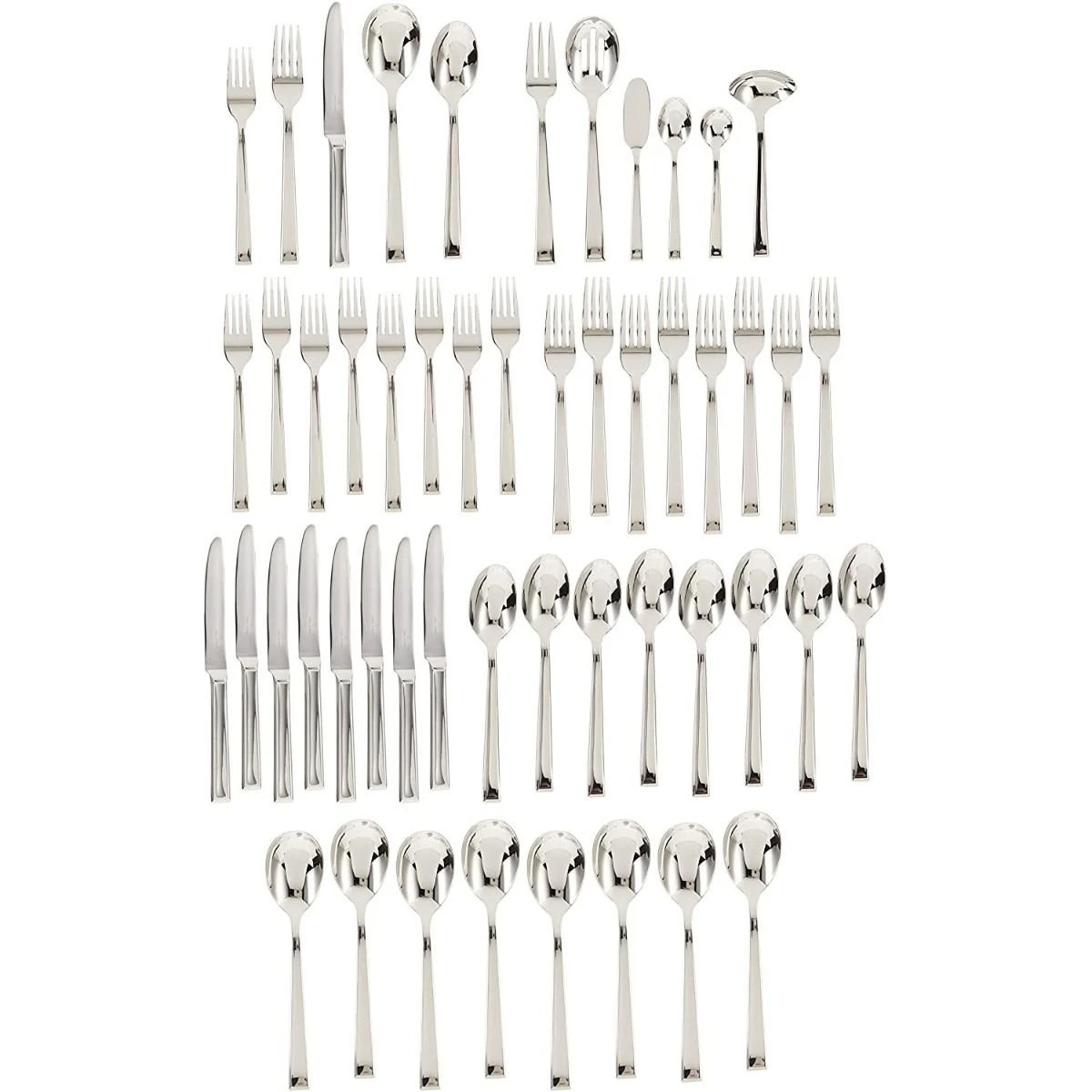 - Includes: 8 table forks, 8 table knives, 8 tablespoons, 8 teaspoons, 8 cake forks, 1 salad fork, 1 salad spoon, 1 sauce ladle, 1 sugar spoon, 1 butter knife, 1 serving fork